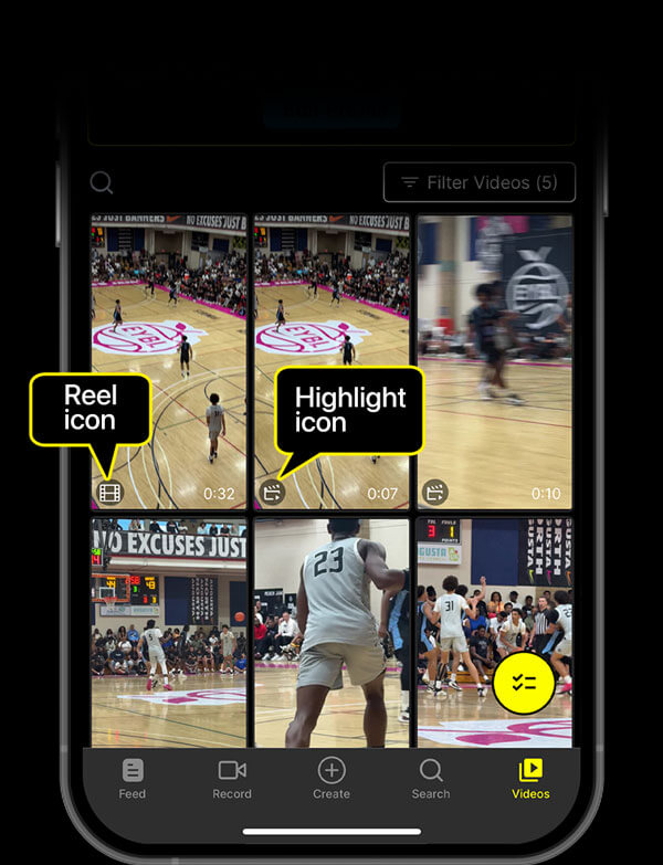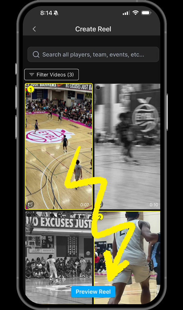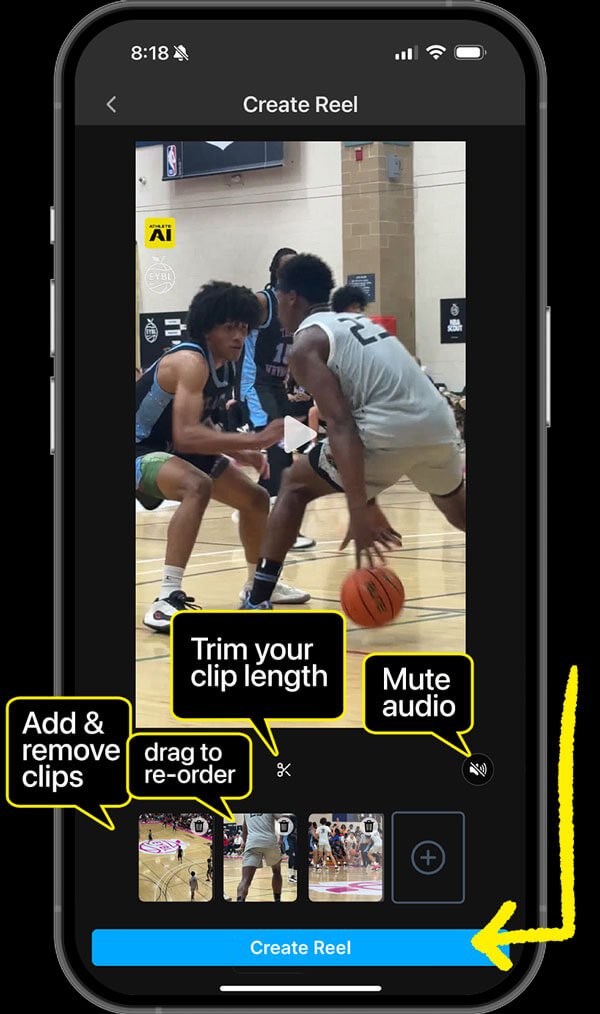 TAP “CREATE REELS” TO START SELECTING YOUR HIGHLIGHTS