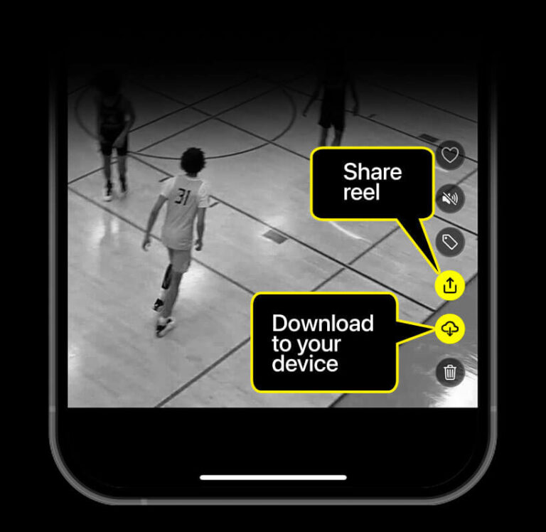 Tap the “Share” icon (second from the bottom on the right side of your video) to instantly send your clip to teammates, family, recruiters — or straight to social.