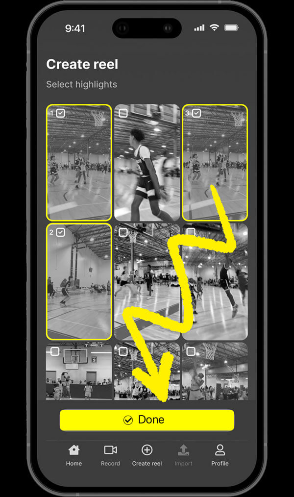 Now turn those highlights into heat. Tap Create reel. Pick the best plays and the power of AI does the editing for you.