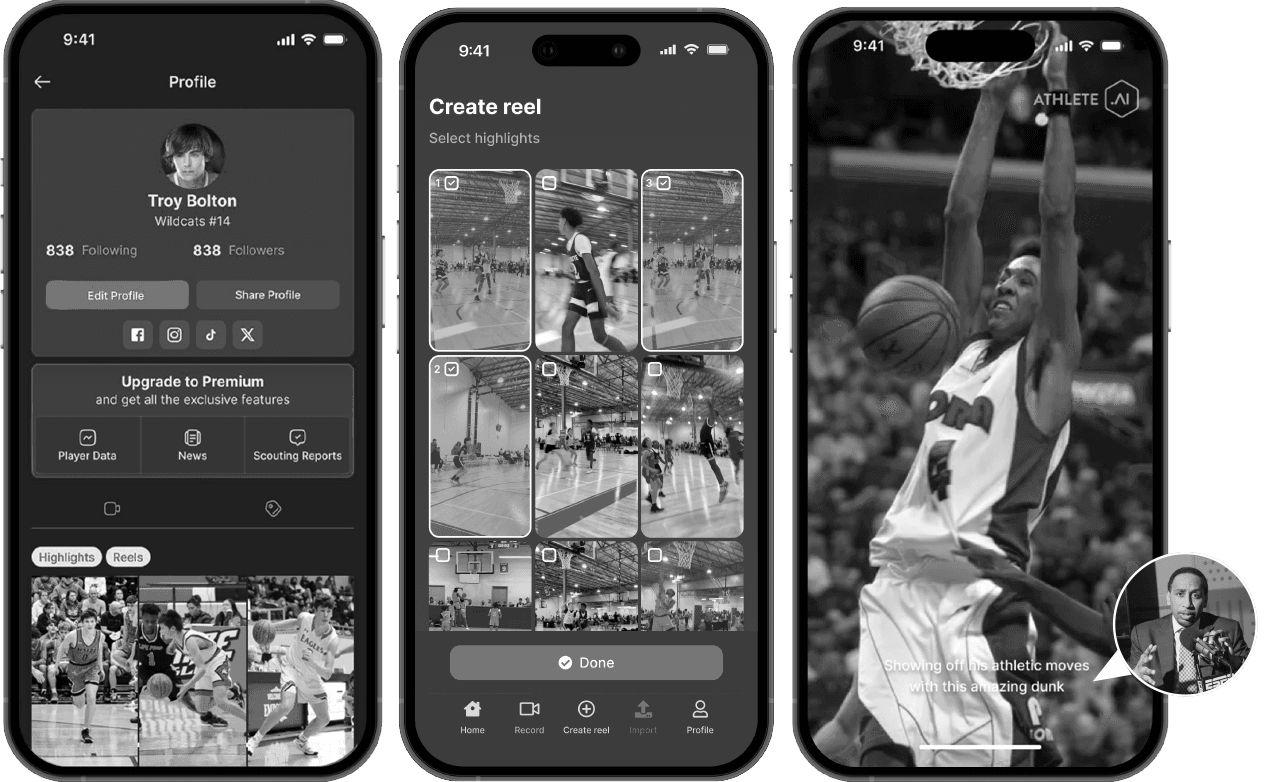 AI Studio gives you full creative control. Add music, sound effects, transitions, captions, and more — all from your phone. Built for athletes who want their reels to stand out, look pro, and feel personal.